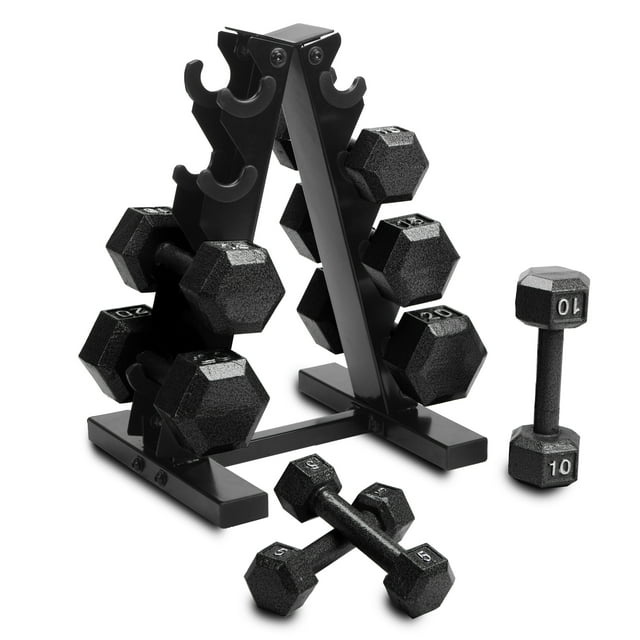 CAP Barbell 100 lb Cast Iron Hex Dumbbell Weight Set With Storage Rack, Black, Strength Training Free Weights CAP Barbell 100 lb Cast Iron Hex Dumbbell Weight Set With Storage Rack, Black, Strength Training Free Weights CAP Barbell 100 lb Cast Iron Hex Dumbbell Weight Set With Storage Rack, Black, Strength Training Free Weights