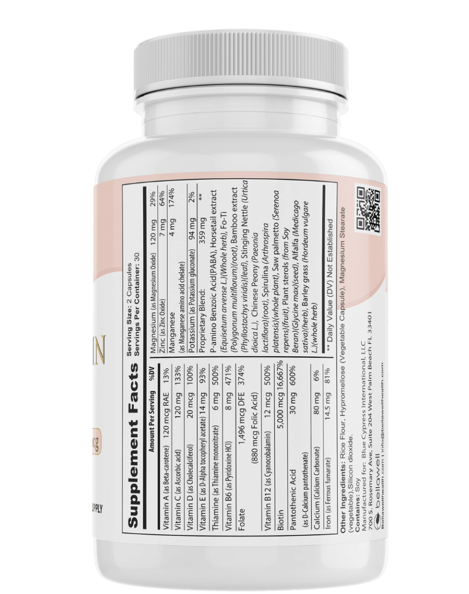 Our supplement blends a variety of essential vitamins to help fill nutritional gaps in daily diets. This combination of nutrients offers a well-rounded approach to supporting hair, skin, and nails naturally. With a mix of biotin, folic acid, vitamin B6, and antioxidant-rich vitamins C, D, and E, our formula supports your overall beauty regimen.