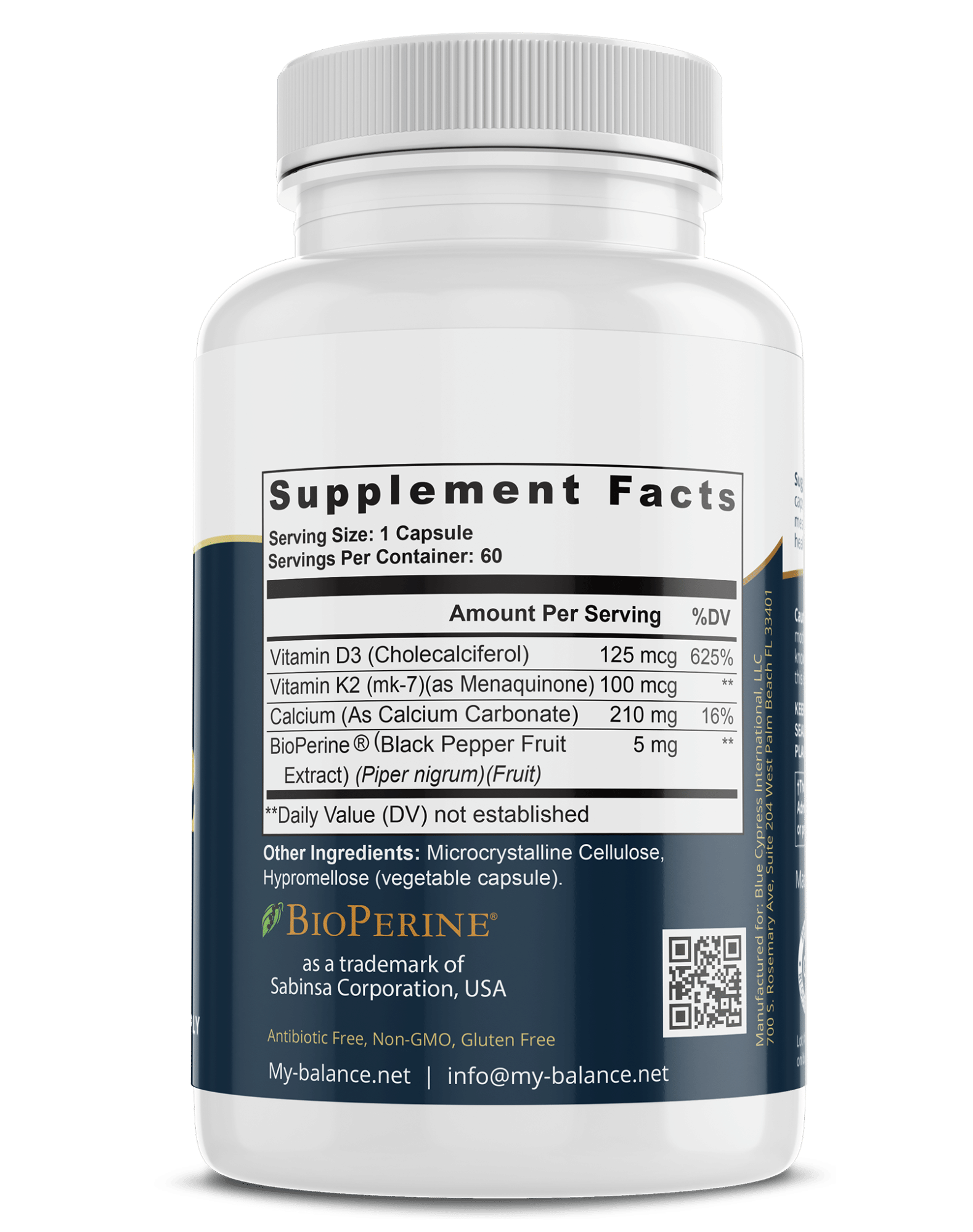 Elevate your daily routine with My Balance Vitamin D3 & K2 Supplement, a thoughtfully formulated blend to support your nutritional needs. This synergistic combination, enhanced with Bioperine, helps ensure that you receive the full benefits of these essential vitamins.